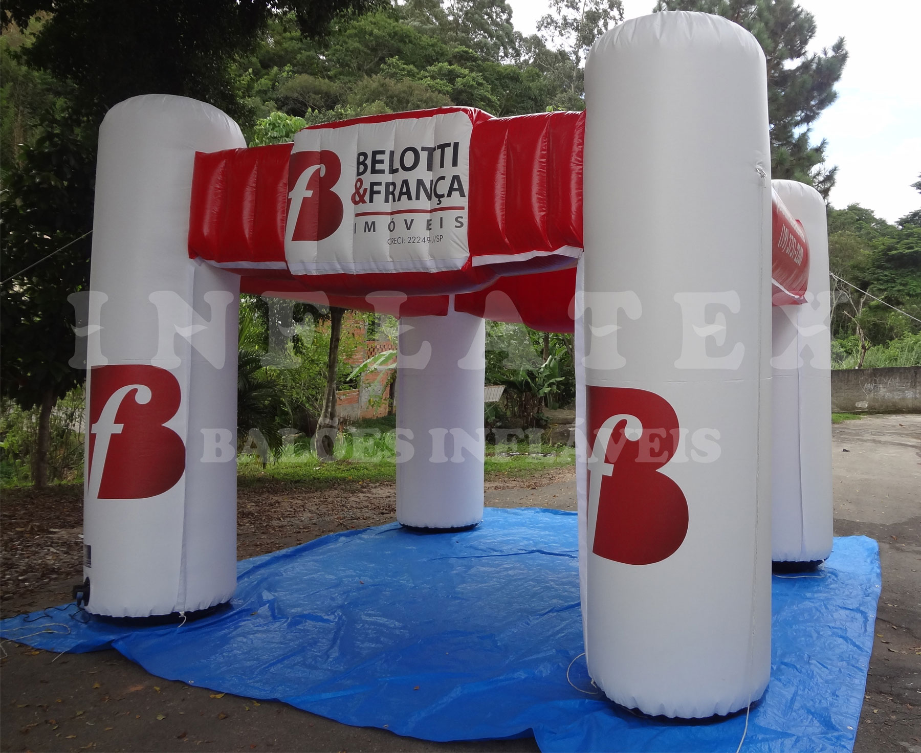 - Tenda Belotti Franca: Design personalizado com logomarcas aplicadas.